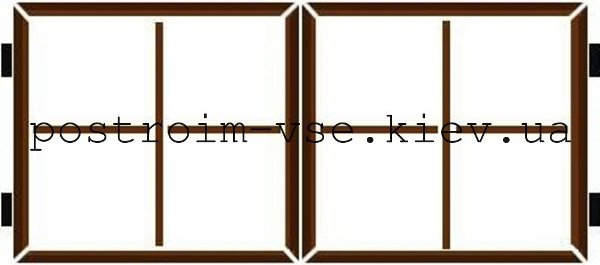 2 створка-4 стойки из Т-профиля и 3 внутренних элементов каркаса из профильной трубы 20 на 30 мм., 2 петли диаметром 30 мм
